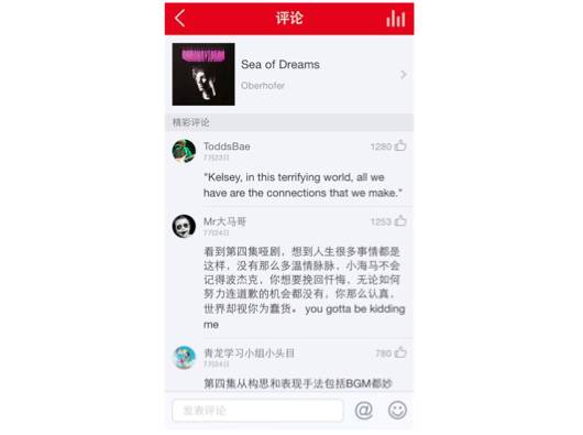 更重要的是,网易把握住了年轻人在表达分享情感和个性等方面的需求,评论区UGC就是针对这一诉求诞生的。网易云音乐的评论区,已不仅仅是音乐产品的业界经典,如今更是成为”UGC+社交“运营的成功案例,很多用户甚至已将看网易评论视为听歌非常重要的一部分。其中分享个人故事,对情感的宣泄和表达都极具可读性,在怀旧歌曲下面集体回忆青春更是极易引起共鸣。而一些电视剧插曲的评论里,更成为聚集同好、提供交流的平台。可以说,网易云音乐作为后起之秀,将“音乐+社交”运营得极具创意,成功打造了独特的社群氛围,越来越多的年轻用户也因其优质的服务和使用体验,成为网易云音乐的一生推。
