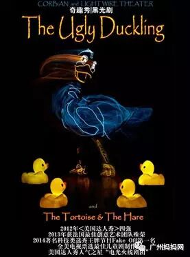 《丑小鸭》由美国电光火线剧团与哥比伊安视艺舞蹈团联合制作,故事取材自安徒生笔下的同名童话,运用电致发光木偶,结合生动有趣的形体与舞蹈。美轮美奂,极富想象力,深受观众喜爱。