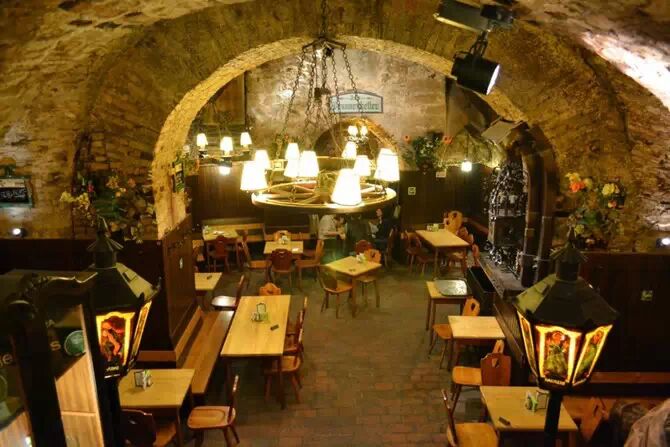 17世纪土耳其军队包围维也纳时就有这个酒窖了,因为紧靠当时的城墙,所以守城将士都在这里休息。据说奥地利作曲家约瑟夫·海顿也经常来这里喝酒。