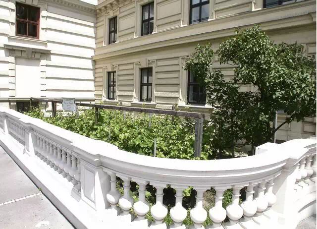 位于维也纳环形路附近的黑山广场5号有个大家都会忽略的地方,就是维也纳最小的葡萄田。面积大约在50平米左右。这里的葡萄以白葡萄为主,所有的葡萄将一起酿制成维也纳的特色酒 “维也纳混合葡萄酒”,数量大约为50瓶。这些酒会在每年圣诞节前举行的 “给黑暗带来光明”慈善活动上拍卖。