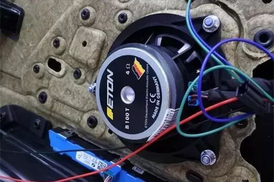 德国伊顿宝马专车专用三寸中音单元B-100T无损对插安装在门板上;