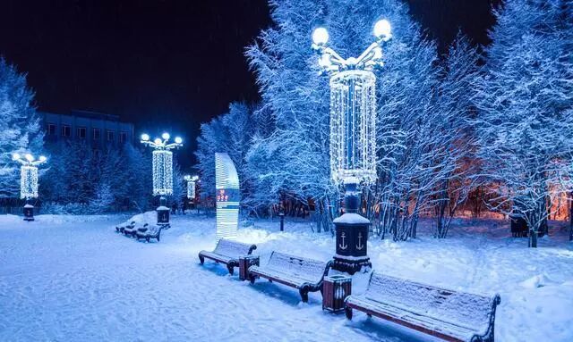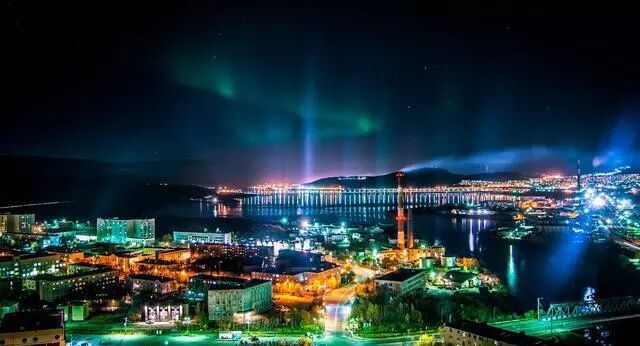 俄罗斯北方军港摩尔曼斯克,地处北纬69度,深入北极圈超过300公里,是北极圈内最大的城市。