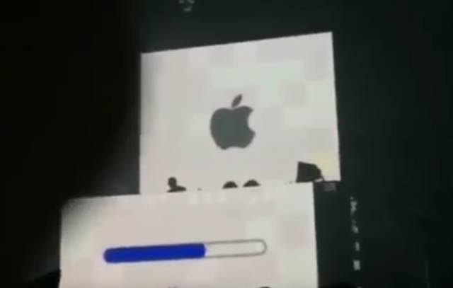 ▲DEADMAU5演出中突然电脑出现故障,屏幕出现苹果开机页面也是尴尬满满。