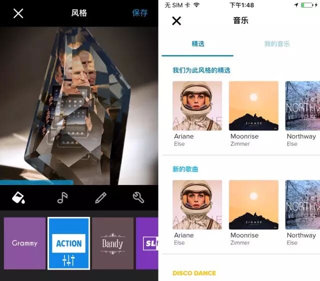 Quik还自带24种视频风格,每一种都有独特的转场效果和BGM,还是那句话:只要滑动手指,然后选最有眼缘的就好啦!而且Quik通过智能算法做出来的视频,我觉得就足够精美了!