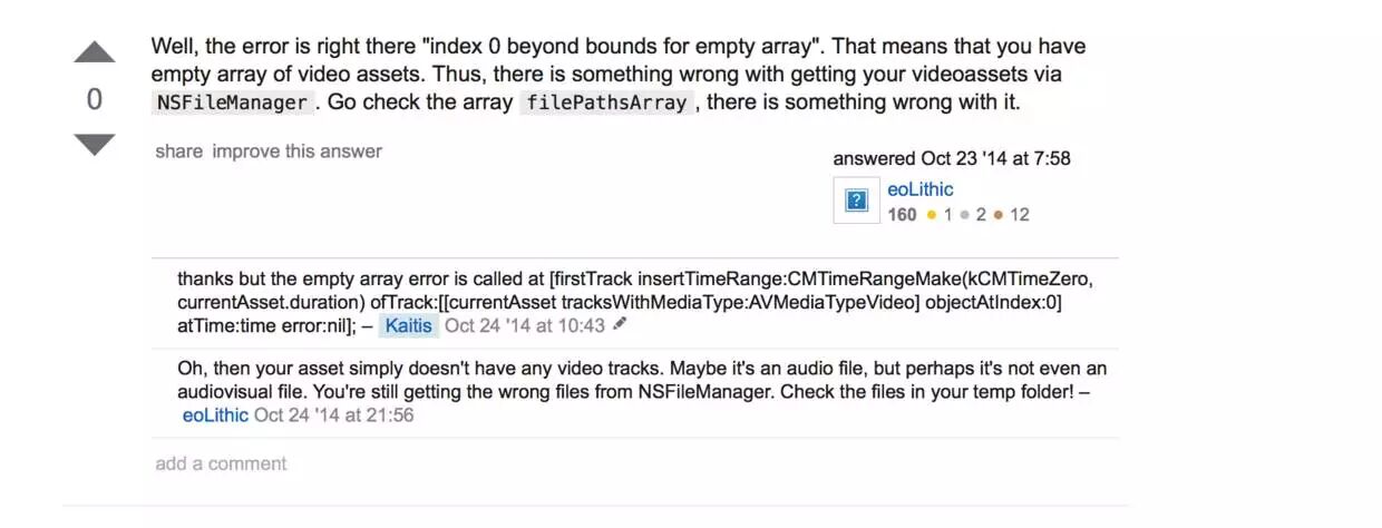 这里经常会遇到到tracksWithMediaType方法返回empty的数组,导致程序奔溃,我从Stack Overflow弄下来的一段解释: