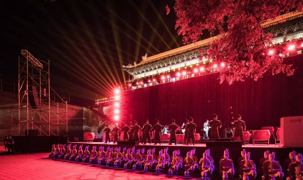 8月9日晚,西安古城墙西门瓮城,一场狂欢盛宴,让这座沉稳厚重的西门城墙又一次焕发出令人热血沸腾的气息。在声光电影之中,一场名为“摇滚秦俑”的大型沉浸式摇滚秀正式开启了她的设计和制作序幕。