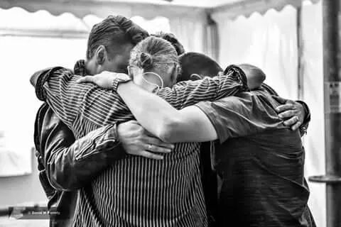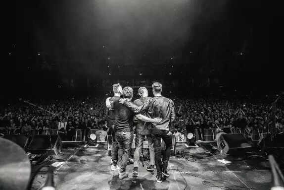 Travis在舞台上,演绎经典单曲自然令人激情澎湃,而小编认为更令人动容的是这样四个人抱在一起的画面: