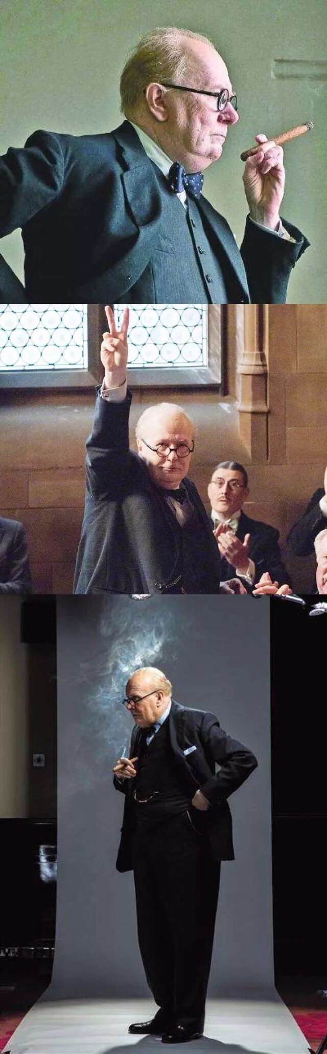 这是最近上映的电影《至暗时刻》,而扮演丘吉尔的演员加里·奥德曼真人是下面的样子,不告诉你根本猜不到对不对。