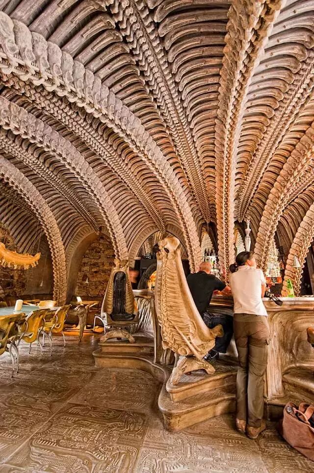 他的设计太迷人了,以至于他在瑞士的家现在成了吉尔格博物馆,边上还有酒吧,酒吧长这个样子,有机会可以去看看。
