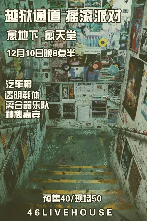 穿越地下通道,脱离丑恶。愈地下,愈天堂,与其苟延残,不如寻欢作乐。来地下跟着摇滚乐队们一起踏上