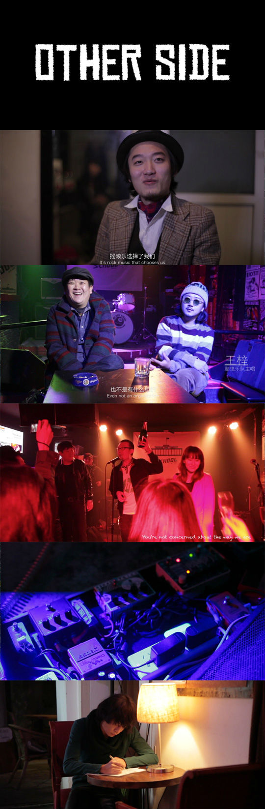 这是一部有关青春,有关友情,有关摇滚乐的纪录片,无论你是否热衷于音乐,相信这部片子都会打动你!这是一部专门为你展现这帮人的“OTHER SIDE”的纪录片—他们的音乐、摇滚生活、友谊以及他们不为人知却也毫不在意的另一面,这是真实而鲜活的,但也潜藏着各种梦想与挣扎。