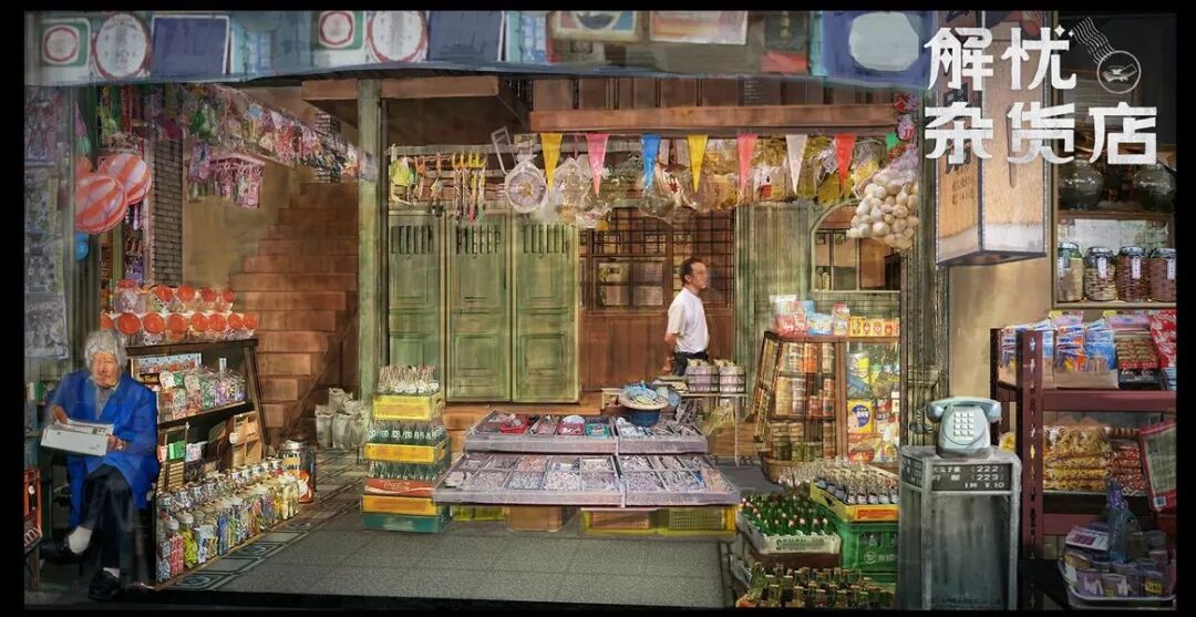 在之前所发布的场景图中,可以看到画面里的杂货店坐落于群山环绕下,店内90年代流行的零食、玩具琳琅满目,无不透出一股浓浓的中国本土气息,引起不少8090后的温暖回忆与共鸣。