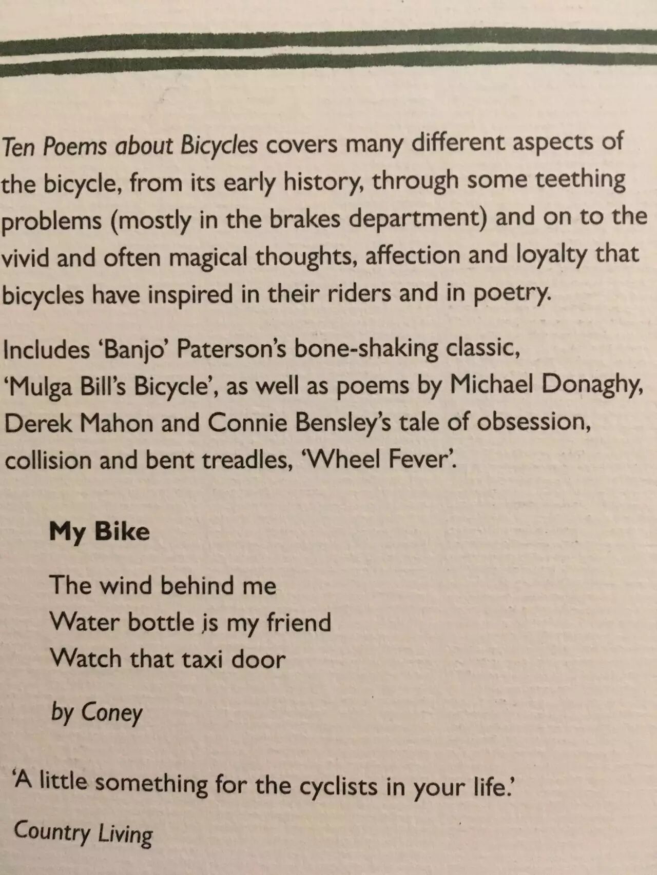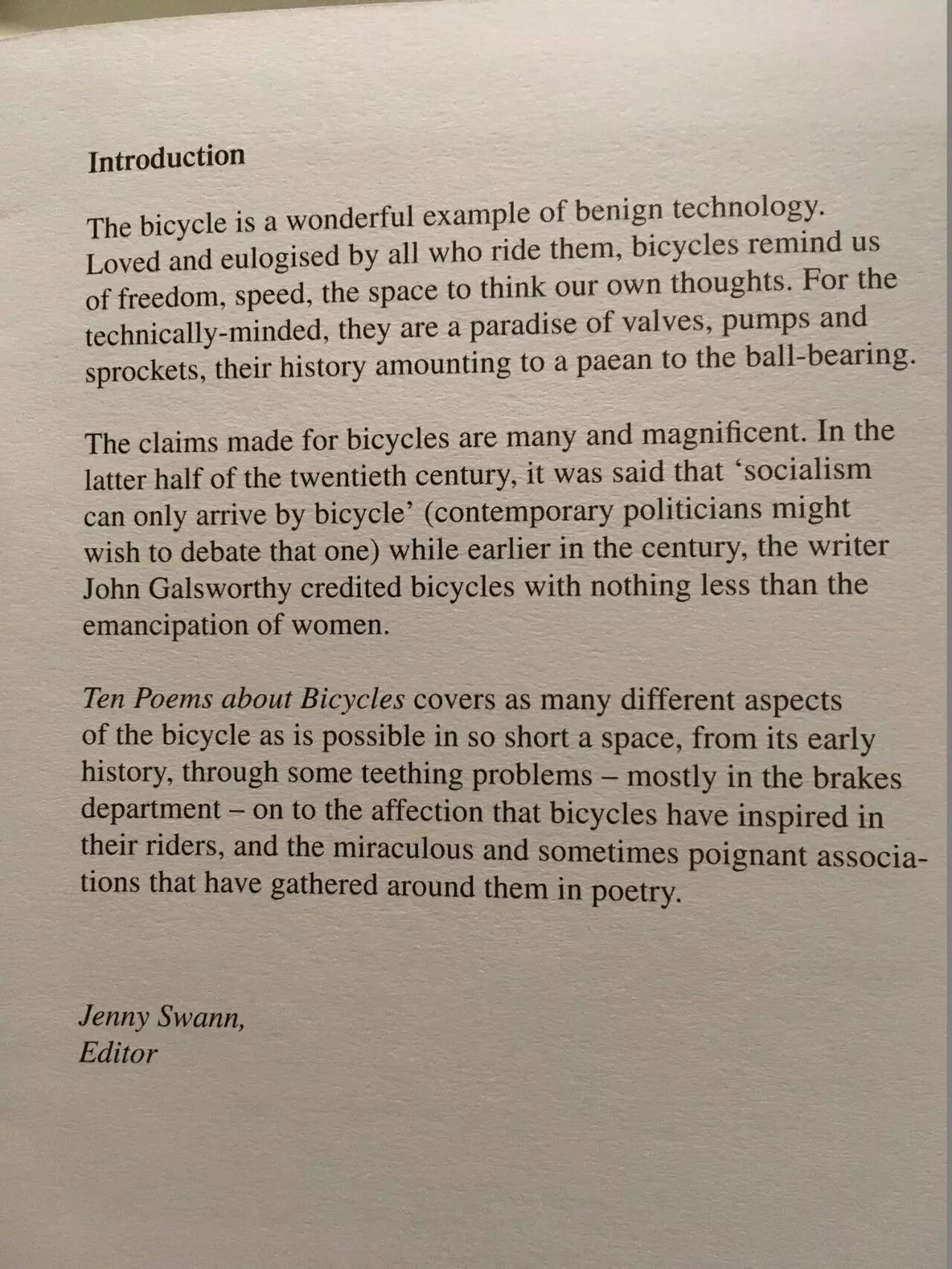 好了,闲话少说,今天看一本英国人编的自行车诗选。该书出版于2009年,只有十首诗和一篇简短的序言。