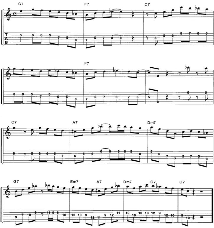 最后是一条“3 to ♭9”在blues演奏中的实际应用,祝大家练的开心。
