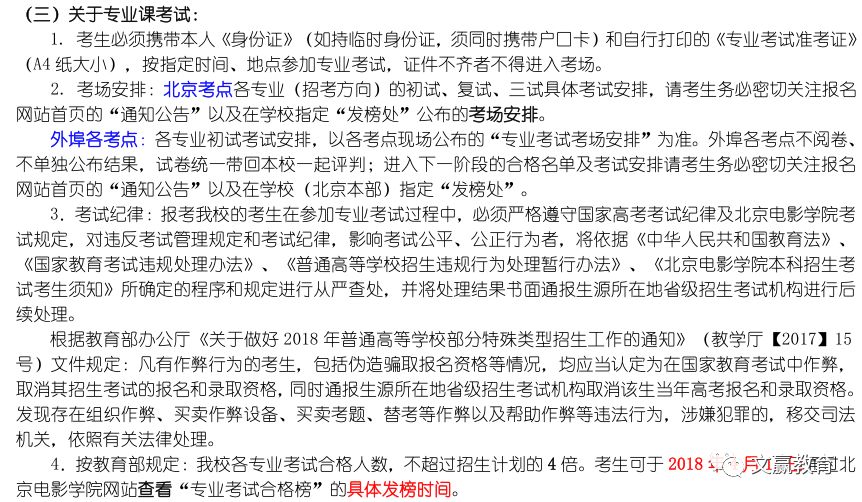 1.北京电影学院专业考试合格的考生须参加“2018 年全国普通高等学校招生文化课考试”。 华侨、港澳台地区考生须遵照中国普通高等学校联合招生办公室规定的时间报名参加文化课考试。