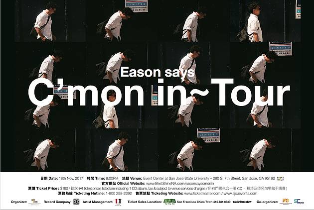 感謝大家一直陪伴陳奕迅! Eason says C’mon in~ Tour 11月18日 (星期六) 聖荷西站演唱會反應非常熱烈, 現增設小量$250座位(Floor)。門票將於本週五,10月20日中午十二時於 Ticketmaster.com 正式發售!