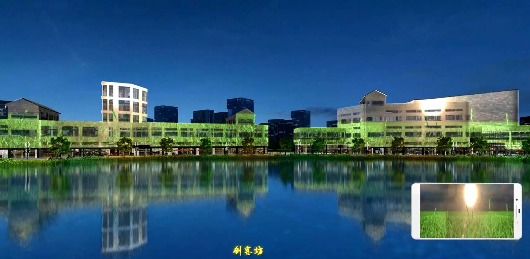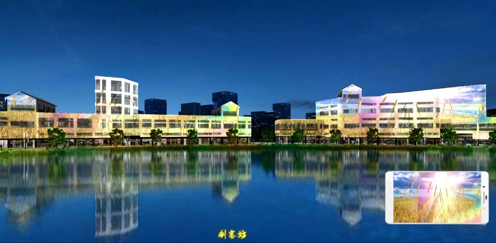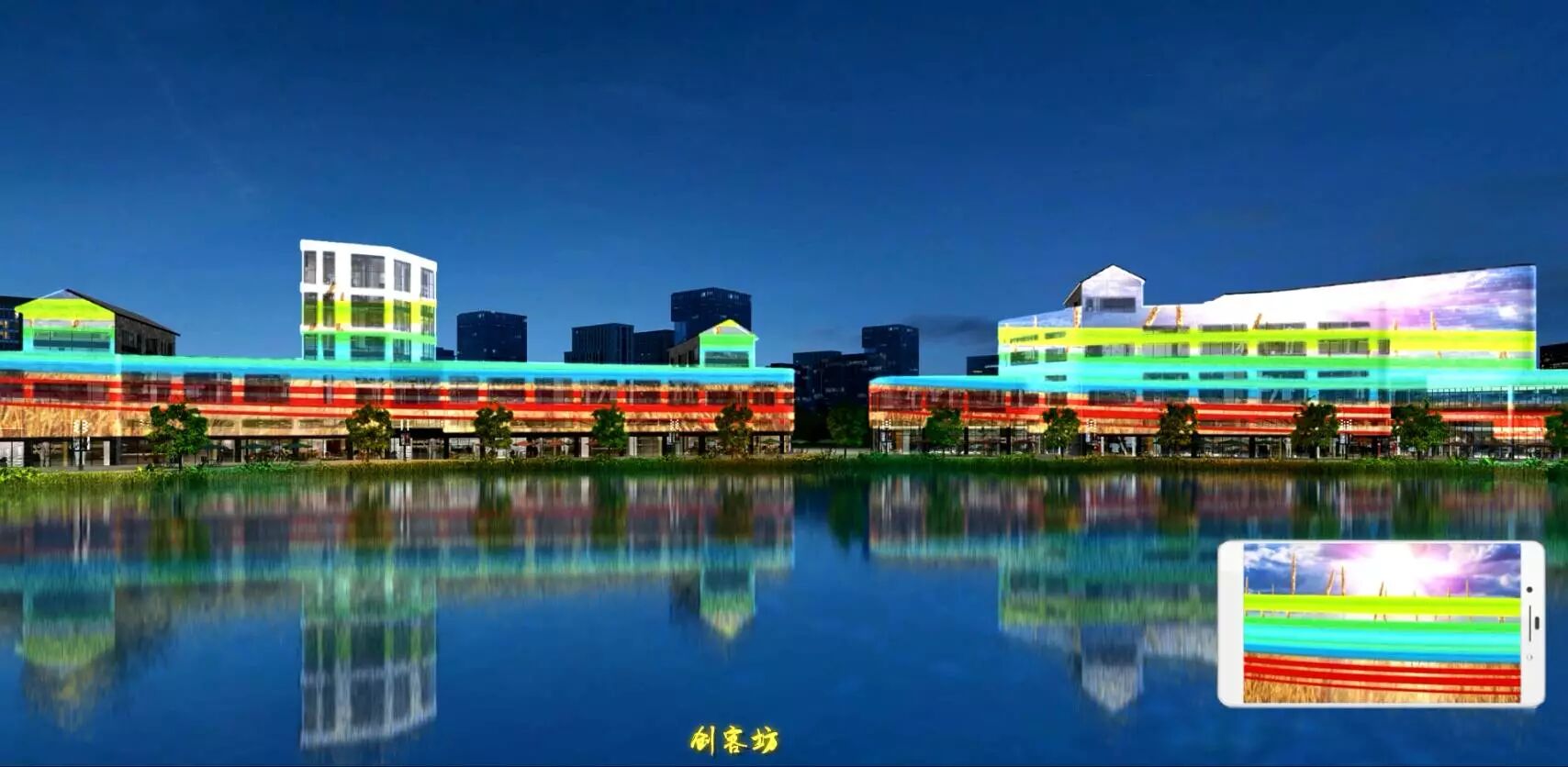 创客坊是时下年轻人展示才华,表现创意的绝佳舞台,因此夜景灯光以高科技的现代手段,三维立体在建筑立面展现各种奇思妙想,沿着墙壁攀爬生长的藤蔓开出美丽的花朵,古镇麻涌如清明上河图般的生活长卷,栩栩如生,呆萌可爱的各种动物,梦幻瑰丽,传颂千古的经典爱情故事,都纷纷在创客坊立面徐徐展现。