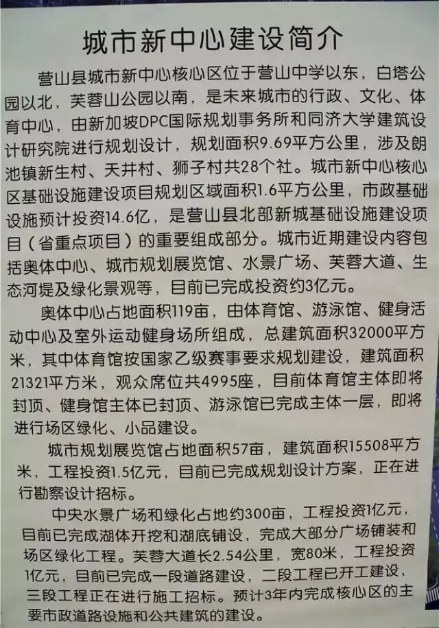 据了解,营山县城市新中心包括行政中心、奥体中心、文化中心和白塔公园等,规划面积9.69平方公里,其中,核心区面积1.6平方公里。