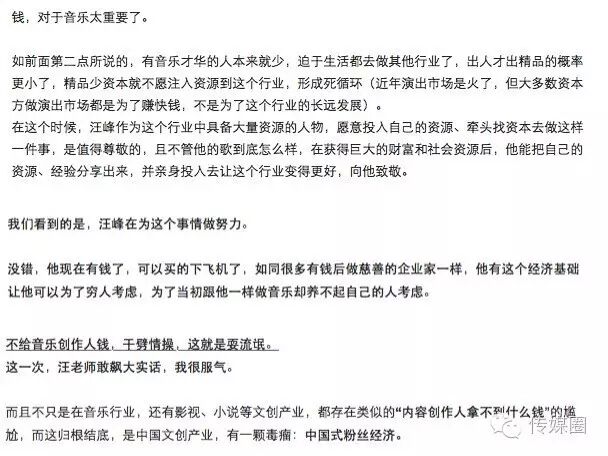 乐评人邓柯发布微博长文:“汪峰说的没错。没钱让人丧失尊严,没钱迫使音乐人们陆续离开音乐行业,没钱会让人们更难以听到有尊严的音乐。”