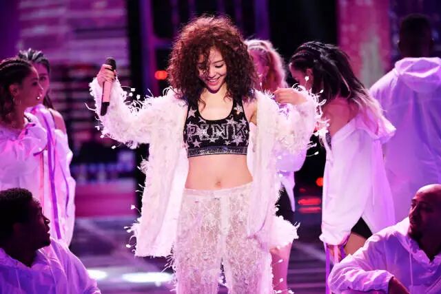 四分半的表演时间,张靓颖演唱了《808》、《Dust My Shoulders off》歌曲串烧,更是现场首唱英文“二单”《Work For It》。