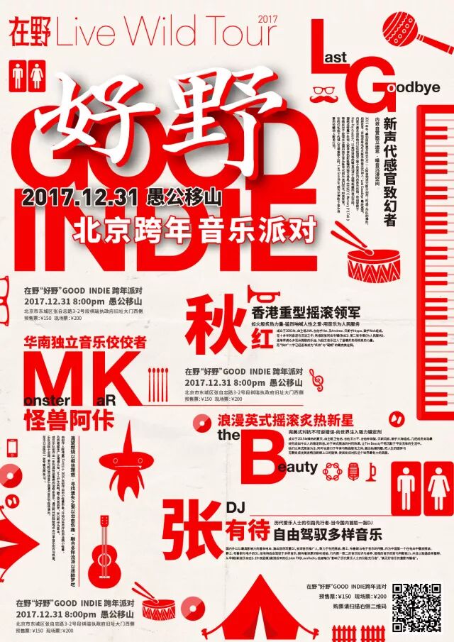 为此我们特意邀请了来自音乐、创意、艺术、文化等不同领域的人士,即将聚合于北京愚公移山,共赴这场以Good Indie为代号的攻陷时空、迷醉自由的随性狂欢。