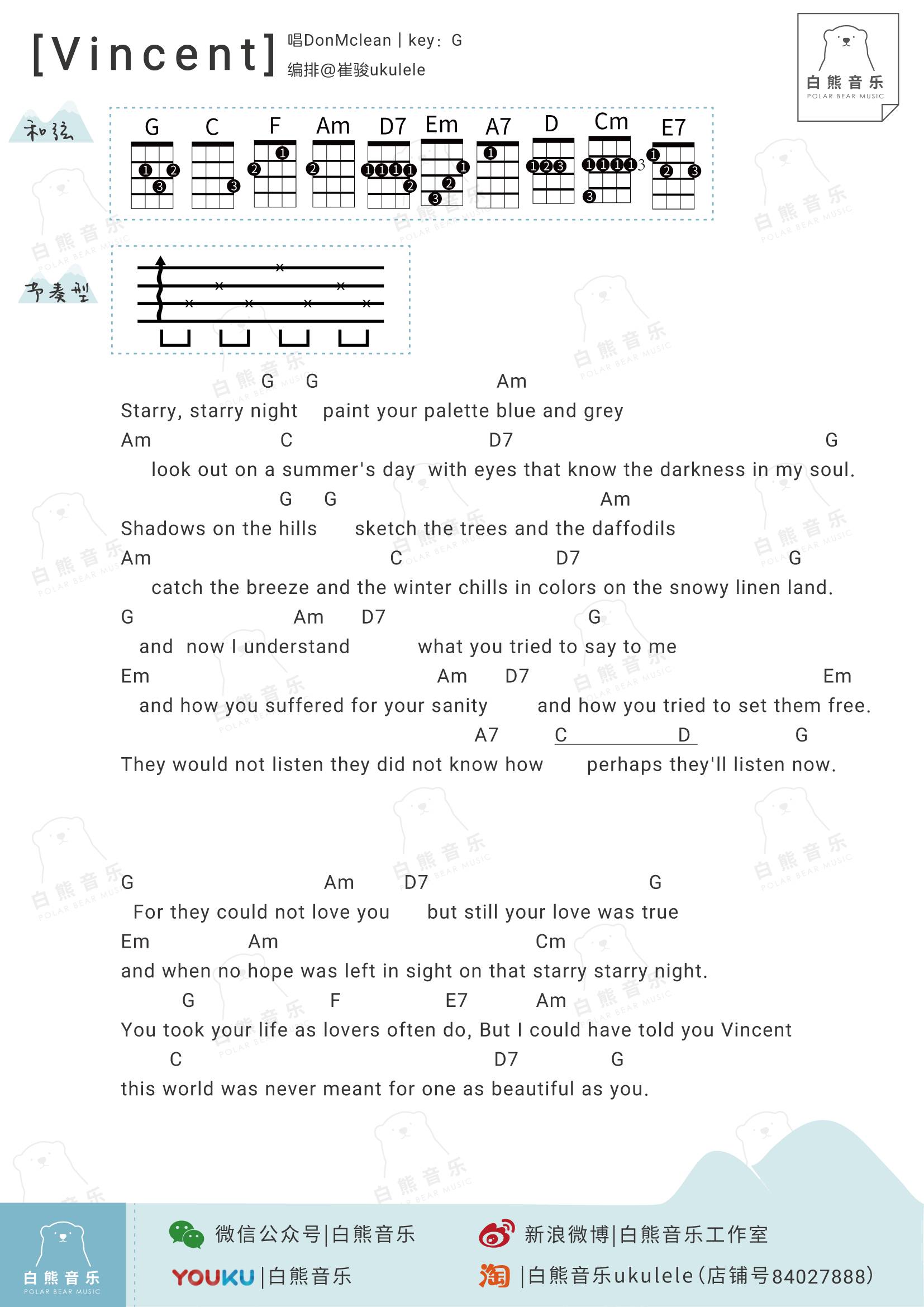 ‖著名民谣歌手唐·麦克莱恩(Don Mclean),他用这首感人的歌献给这位“疯子”凡高,歌曲的第一句“Starry starry night......”描绘的就是梵高的著名作品《星月夜(The Starry Night)》。同时,歌词中还穿插描绘了梵高的其他画作。这首歌也感动了全世界热爱生活, 心存希望的人们...在荷兰阿姆斯特丹的凡高纪念馆前,人们总能听到这首歌,一遍一遍的放着,永远让人感动,让人怀念。