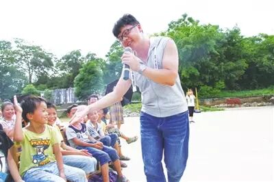 ▲莫掩策下乡为村里的孩子演出。