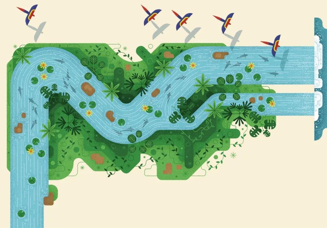 “哈哈,这么好的天气,我们来比赛谁游的快吧!” 第一条小溪一面说着,一面奋力向前游起来。