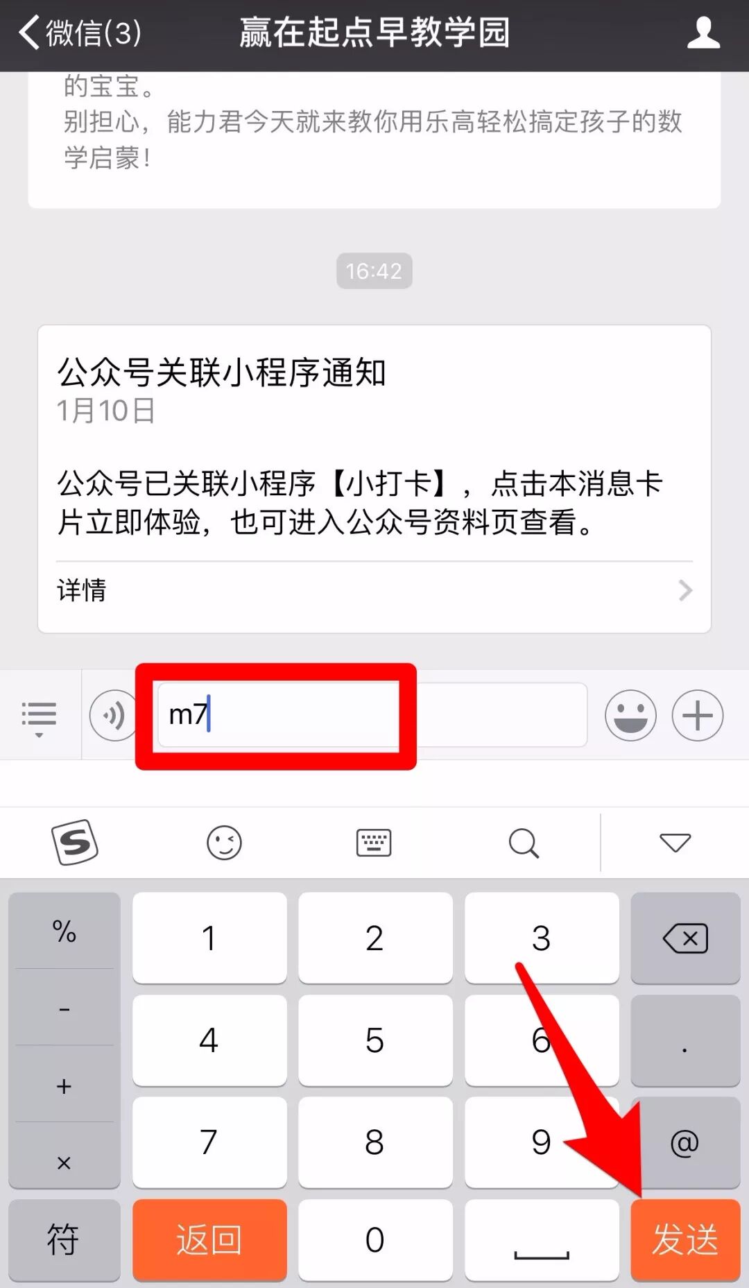 在聊天框内输入“M7”,发送!