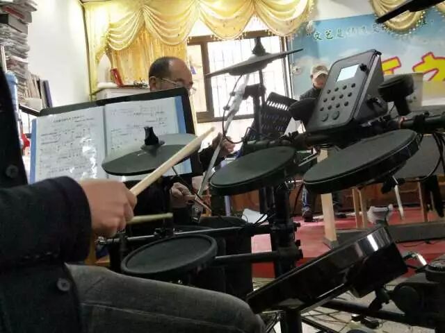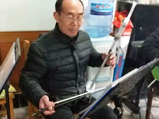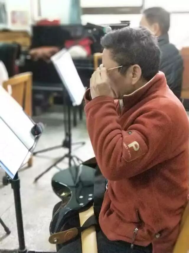 不大的空间里,摆着各种乐器,一群人正全神贯注的摆弄着。令人惊讶的是,除了唯二的两个2、30岁的年轻人以外,其他全部年近花甲。