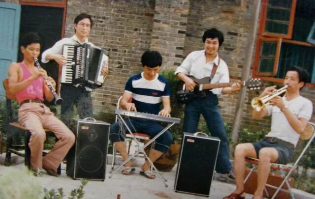 ◆86年临澧第一只电声乐队照。中间为黄小初