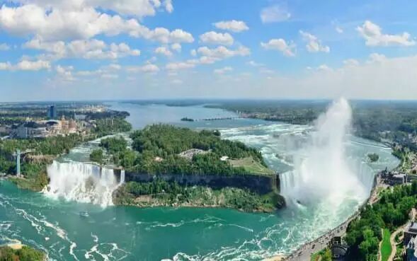 尼亚加拉瀑布位于加拿大安大略省和美国纽约州的交界处,是世界第一大跨国瀑布。