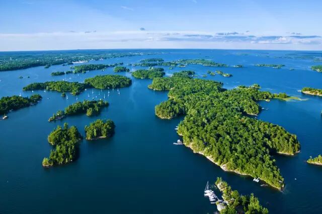 从天空中俯瞰,整个岛呈心形,故名心形岛。巨富在岛上兴建城堡,可惜工程未完,妻子已因病去世。他伤心之下,再未登岛,而后又把岛卖给美国政府。此后该岛成为旅游胜地。