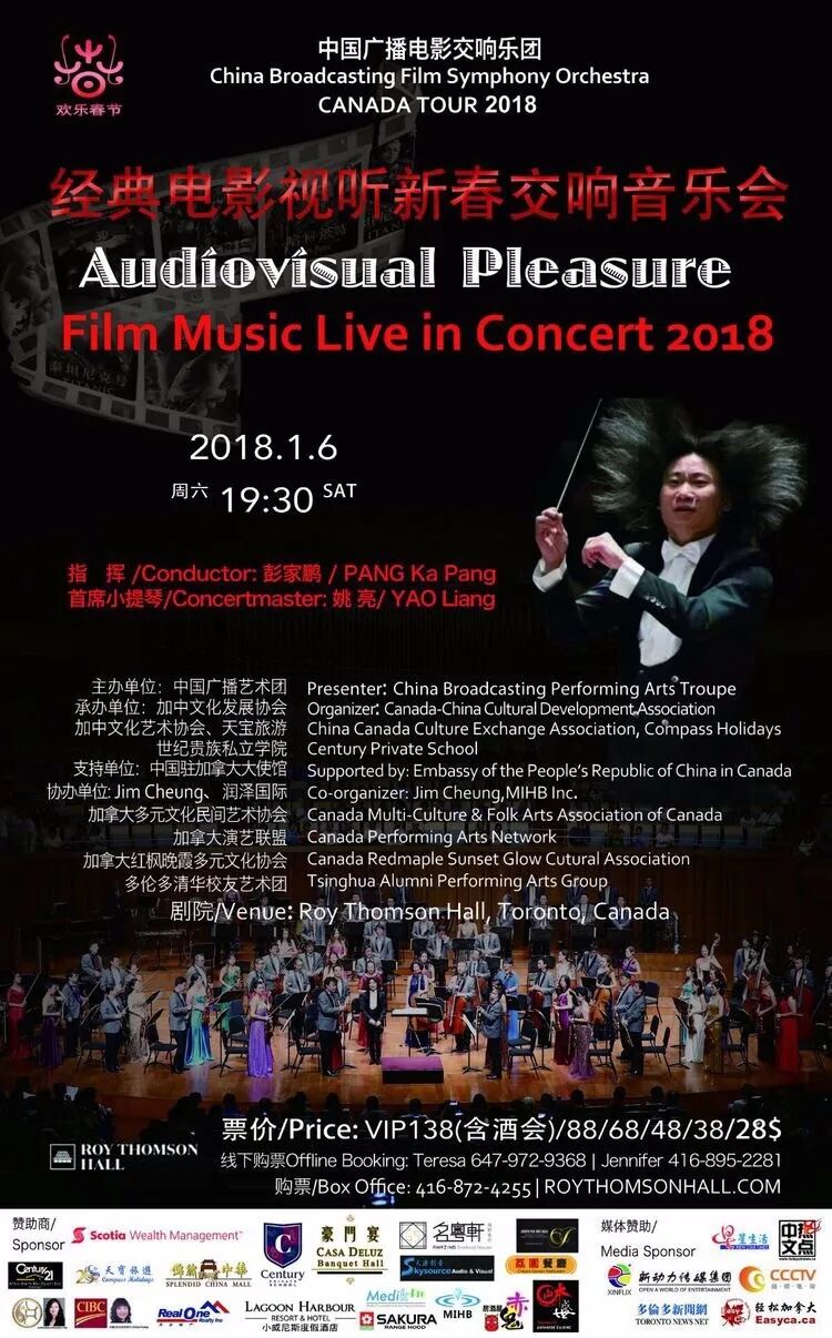 中国广播电影交响乐团1月6日将在多伦多开办经典电影视听新春交响音乐会啦!
