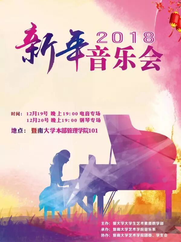 12月19日(电音专场)、20号(钢琴专场)晚上19:00我们【暨大本部管理学院101大厅】不见不散。音乐盛宴,敬请期待。