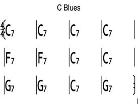 这是一个传统的Blues,以后有机会我们会学习Jazz Blues,Bebop Blues的形式,它们的和弦进行会更复杂。