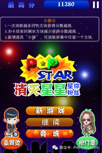 《消灭星星(星你粉丝版)》是一款脑力休闲手游,全球拥有超过3亿玩家,这款游戏的核心玩法是通过消灭星星来获得通关积分,积分在每一关都将递增,只有频繁的超越自我才可继续游戏。简单来说就是“消除”,作为一分钟轻松上手的全龄休闲手游,华丽连消炫酷特效,一旦开始,便难以停止。目前这款游戏和男神“都叫兽”金秀贤达成了深度合作意向。只要您下载该游戏就有机会赢取其演唱会门票。
