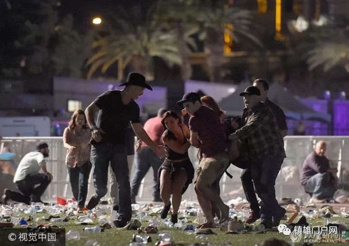当地时间2017年10月1日,美国拉斯维加斯,91号公路丰收乡村音乐节传出枪声,人们救助伤者。