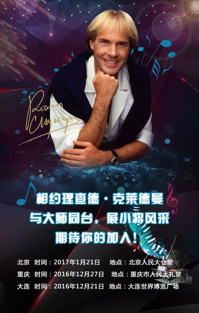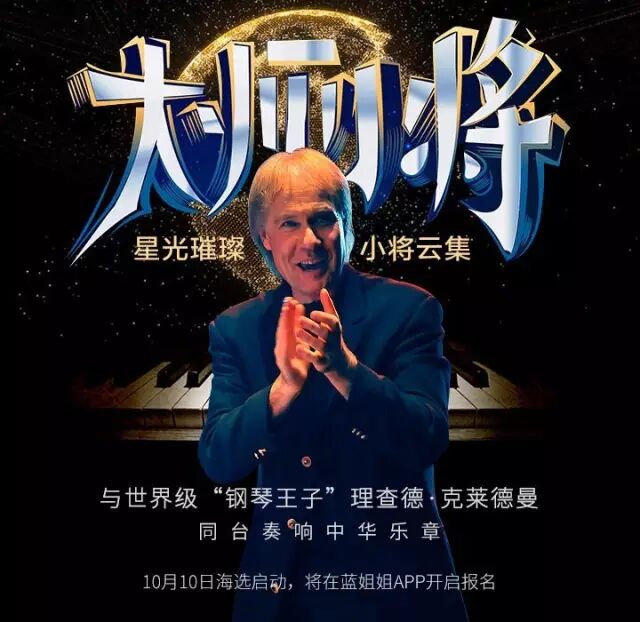 为了给广大琴童提供难得的学习和交流机会,星空创联旗下蓝姐姐携手理查德·克莱德曼钢琴音乐会,在北京、重庆、大连3个地区举办儿童钢琴大赛,寻找钢琴小将,与世界级“钢琴王子”理查德·克莱德曼同台演奏。