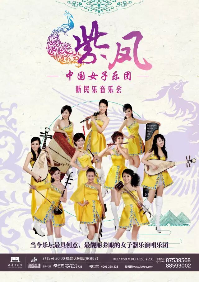 紫凤•中国女子乐团由十几位清丽佳人组成, 是国内唯一一支融听觉和视觉、演奏和表演、音乐和舞蹈为一体,拒绝使用任何西洋乐器的女子民乐团。