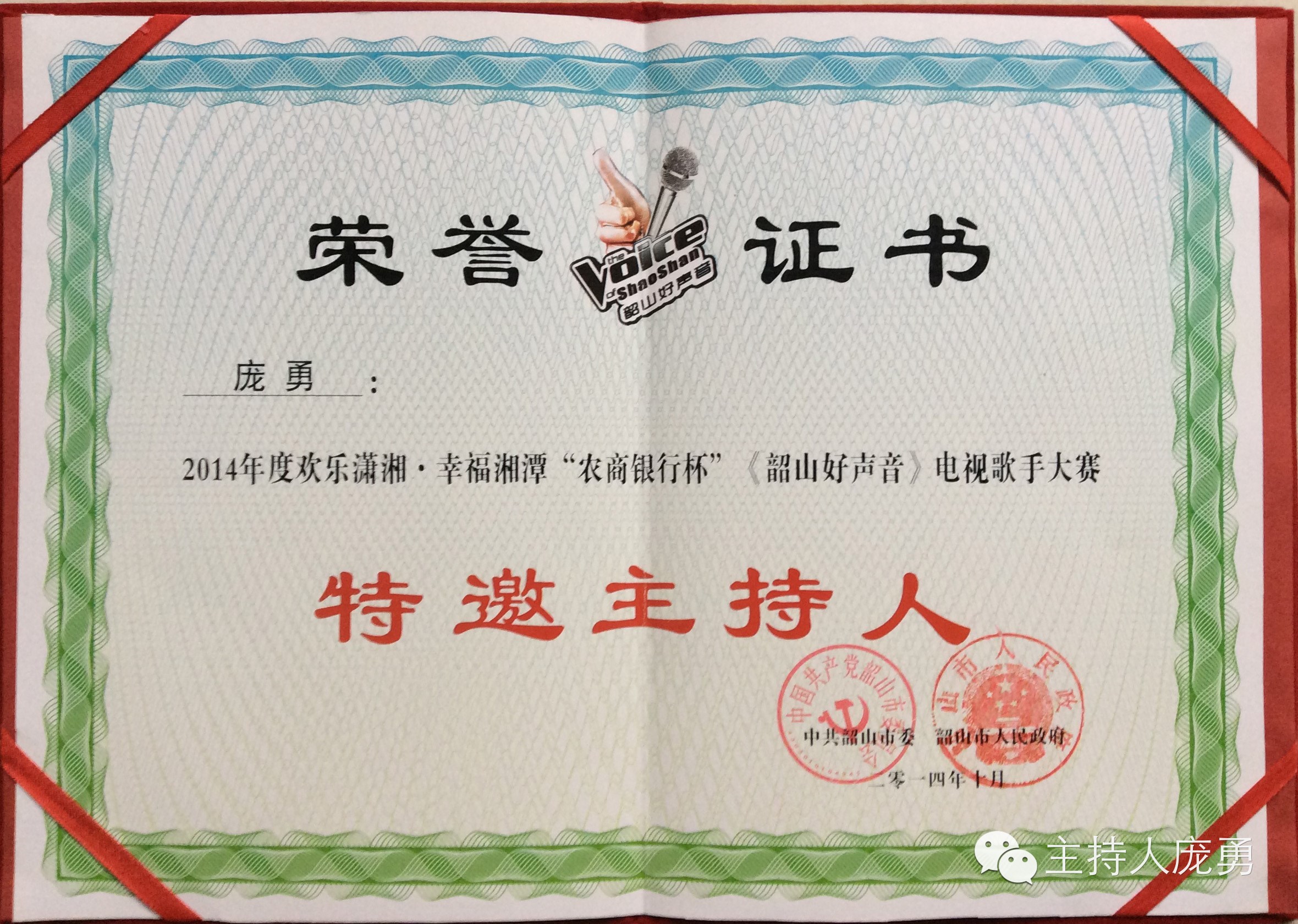 湖南韶山电视台“韶山好声音电视歌手大赛”特邀主持人