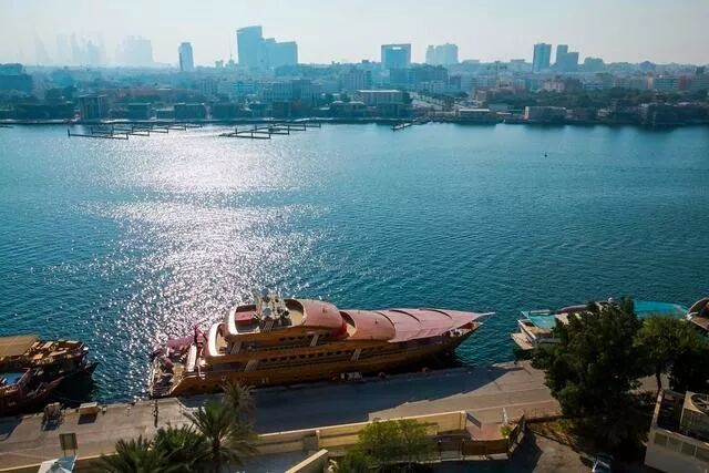 河的岸边停着各种各样的船舶,有破旧的小木船,有豪华的游艇,也有搭建的简易屋和旁边豪华的大酒店…这鲜明的对比并不冲突,恰恰相反竟多出了几分画面感,像是在诉说着迪拜多年的故事。