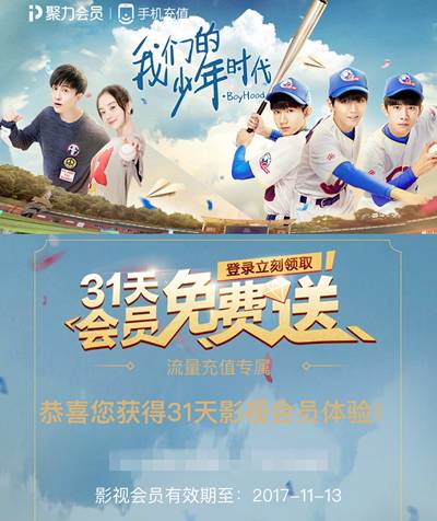 使用手机号码获者第三方登录且绑定手机号码,即可免费领取1个月超清白金会员,人人有份!之前领过的可能不能再领了!