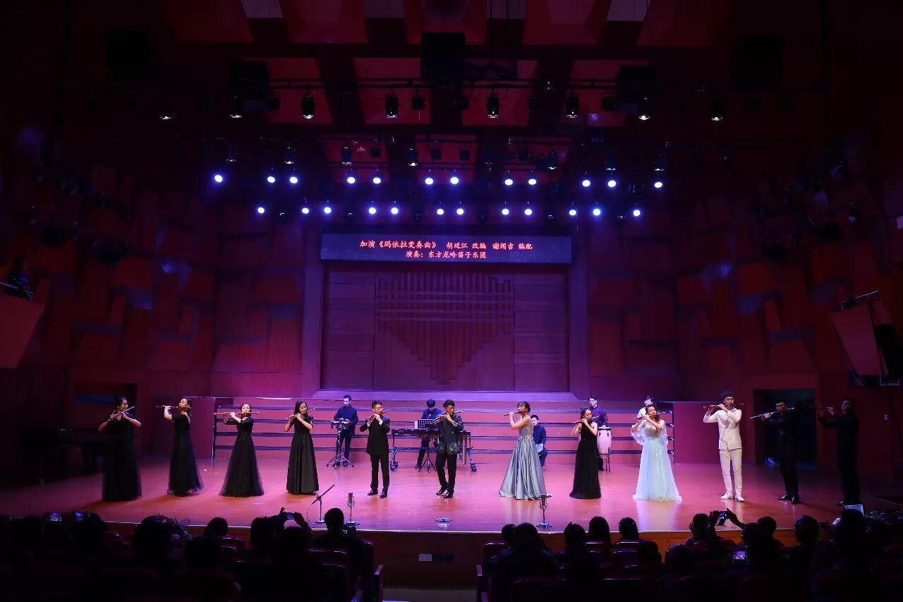 最后在全场观众意犹未尽的掌声中,谢闻吉再次登台,携东方龙吟笛子乐团加演《玛依拉变奏曲》,再次将音乐会推向高潮。