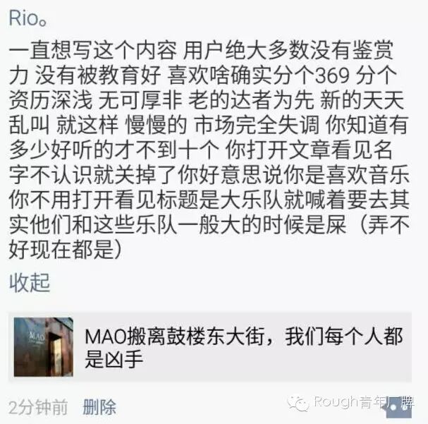 好吧,既然中二了,所以还是得强调本文观点,教育教育用户吧。你加了个前辈微信关注了个乐队微博的你就说,嗨,我贼他妈喜欢你们。说上三句话下次就是带进去的兄弟。