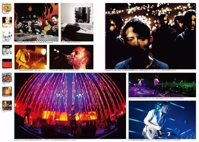 今次这本《摇滚编年史》就信息资料而言,无疑是前几本书的升级版,每支乐队的发展历程在精心绘制的彩色年表上一目了然。一眼扫过,就能清楚某某成员在队内的服役年限、演奏什么乐器、有什么称号,而乐队重要专辑发行的时间,每张专辑的演奏者都有谁,专辑的销量是多少……这些问题也都清晰可查。更贴心的还有,专家团队汇编了艺人们的档案,近期离世的大卫·鲍伊、Motorhead主唱莱米的去世时间也都有标注,编辑的认真与严谨,真可谓诚意拳拳。
