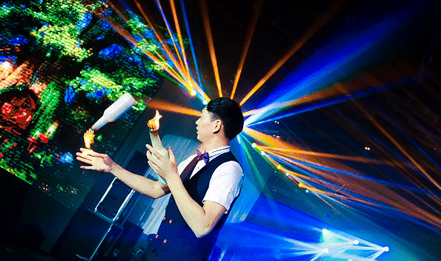 本次活动的赞助商九方小烧酒,将请来国内知名专业调酒师进行现场花式调酒表演。调酒师以白酒为基酒,配以各种独特配方调制出一杯杯颜色鲜艳的鸡尾酒。梦幻时尚的各色酒瓶在调酒师手中来回翻转,五彩缤纷的鸡尾酒相互融合,杂技般的抛瓶表演、花样喷火表演与动感音乐的完美结合将让在场观众惊叹不已。