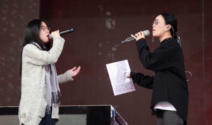 这次他带着自己战队唯一一位学员扎西平措,在9年后重新登上鸟巢,并再唱这首《我和你》。