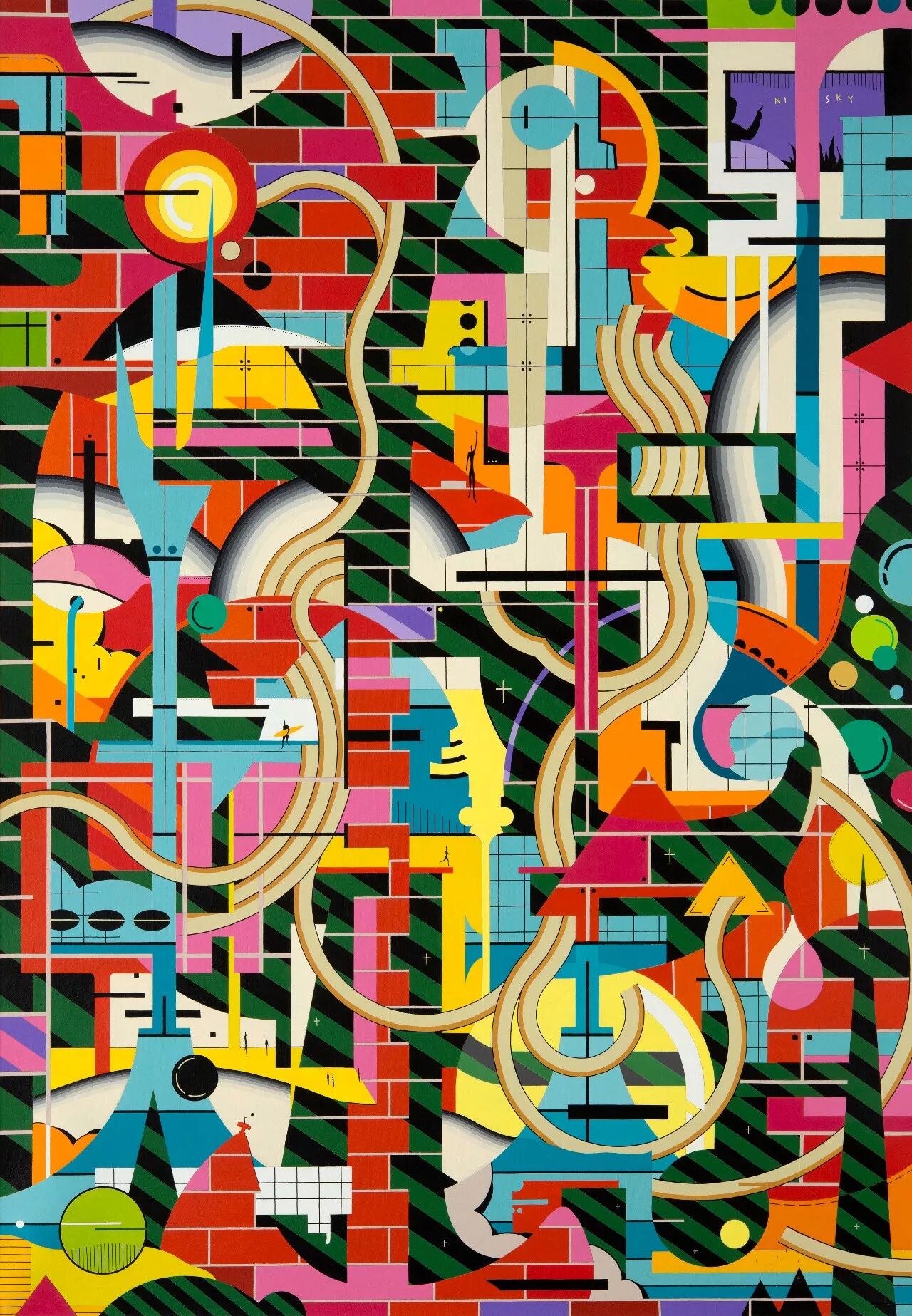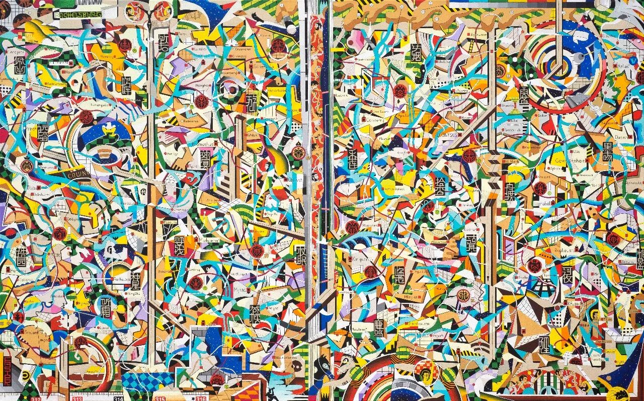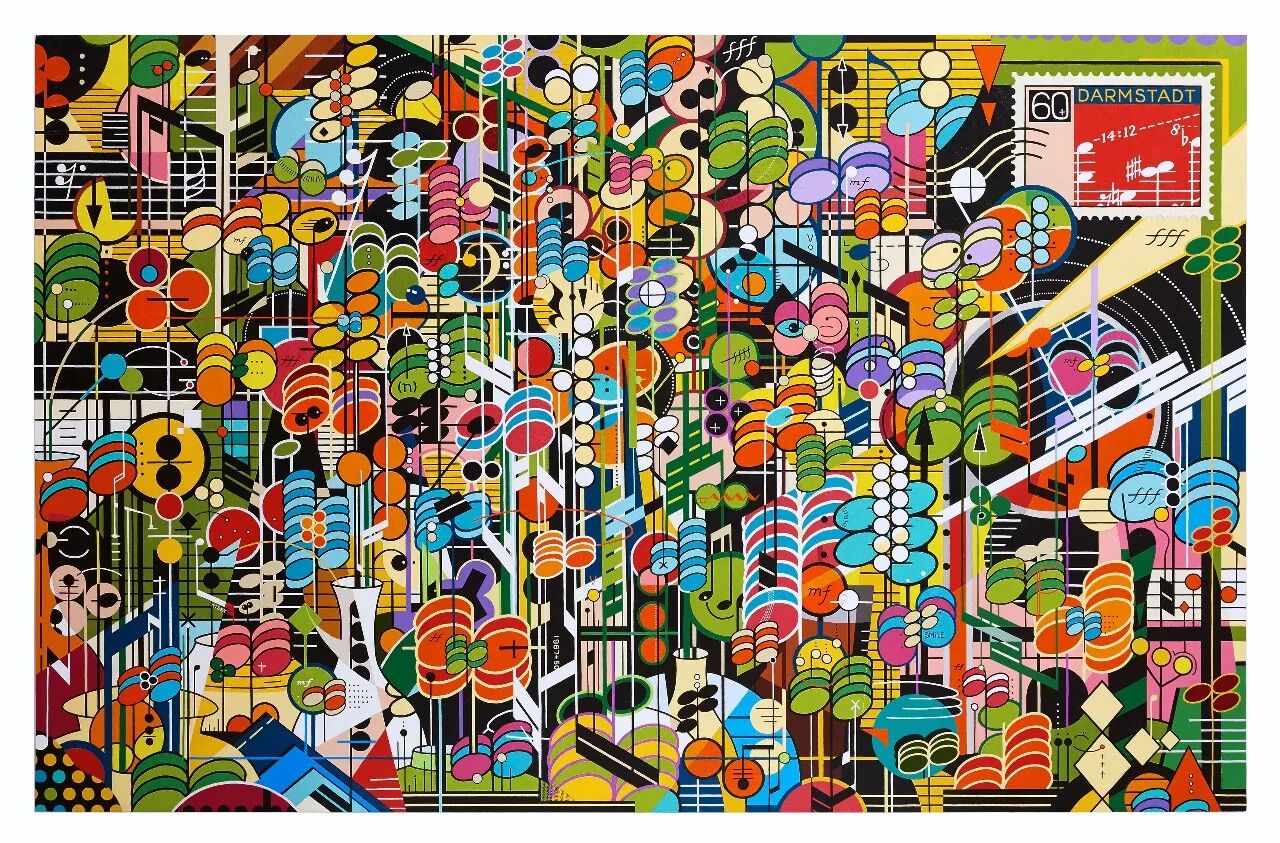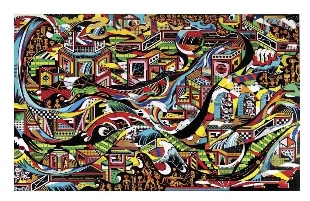 他的绘画灵感主要来自于其庞大的知识体系与多元的文化背景,他创造出一种结构繁复、看似混沌、却完全在掌控范围之内的独特的绘画语言。