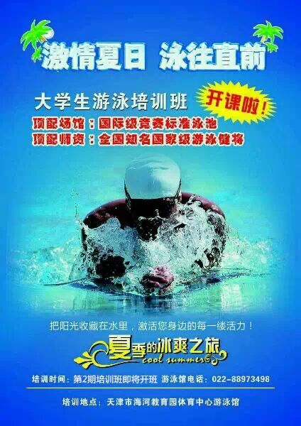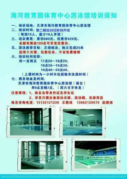 海河教育园游泳馆的第二期大学生游泳培训班火热报名中,名额仅剩五名预报从速哦!